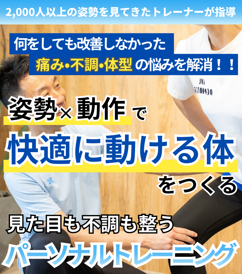 当ジムでは、今までに整形外科やジムで2,000人以上の姿勢や痛み、不調を改善してきた国家資格を持つトレーナーが
